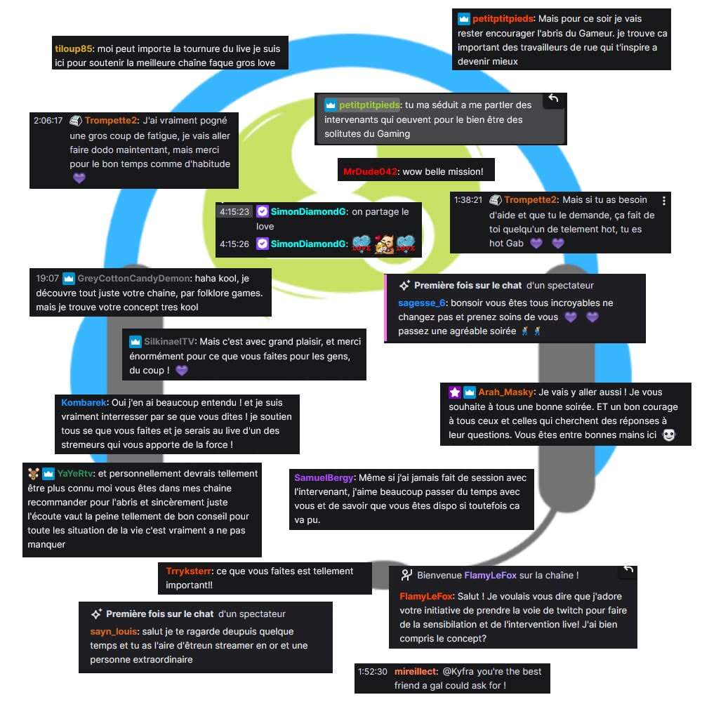 Nous utilisons une plateforme de diffusion en direct (Twitch) afin de diffuser notre contenu et attirer la communauté à connaître les intervenant.e.s et les services de l’organisme. La communauté a également accès à un système de discussion en direct sur la diffusion ce qui permet de parler entre eux mais aussi de parler avec l’intervenant.e. Nous utilisons également une plateforme de messagerie en direct (Discord) qui permet à la communauté d’échanger sur différents sujets et y retrouver des outils, des ressources et des références en lien avec la santé mentale.